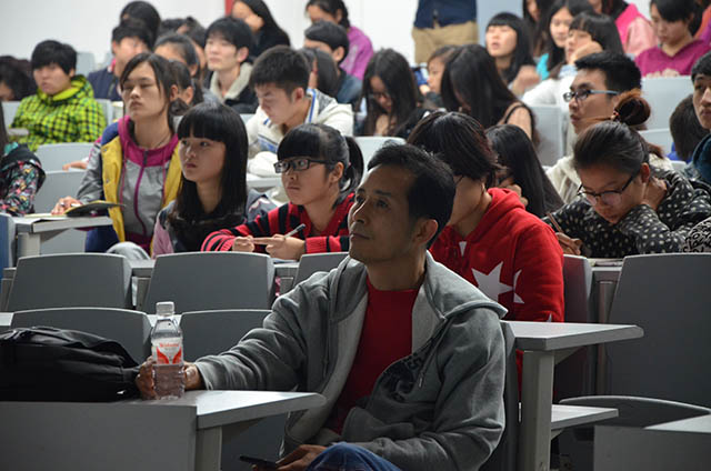 图为师生认真聆听张燕根教师的精彩讲座
