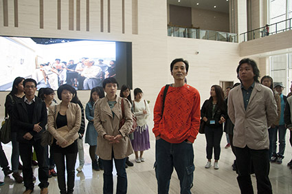 学生们上楼观展