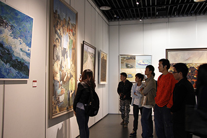 广西首届艺术作品展开展以来,受到了社会各界的广泛关注,吸引了大批艺术爱好者前来参观交流,我院为了进一步活跃校园外学习艺术文化气氛,积极推动我院校内外艺术文化的发展,于11月19日上午,在我院副院长贺明、壁画系主任张笛、刘宇航老师、许玲玲老师、齐雪松老师的带领下,雕塑系、壁画系及公共系的学生一同前往广西美术馆参观了展览。