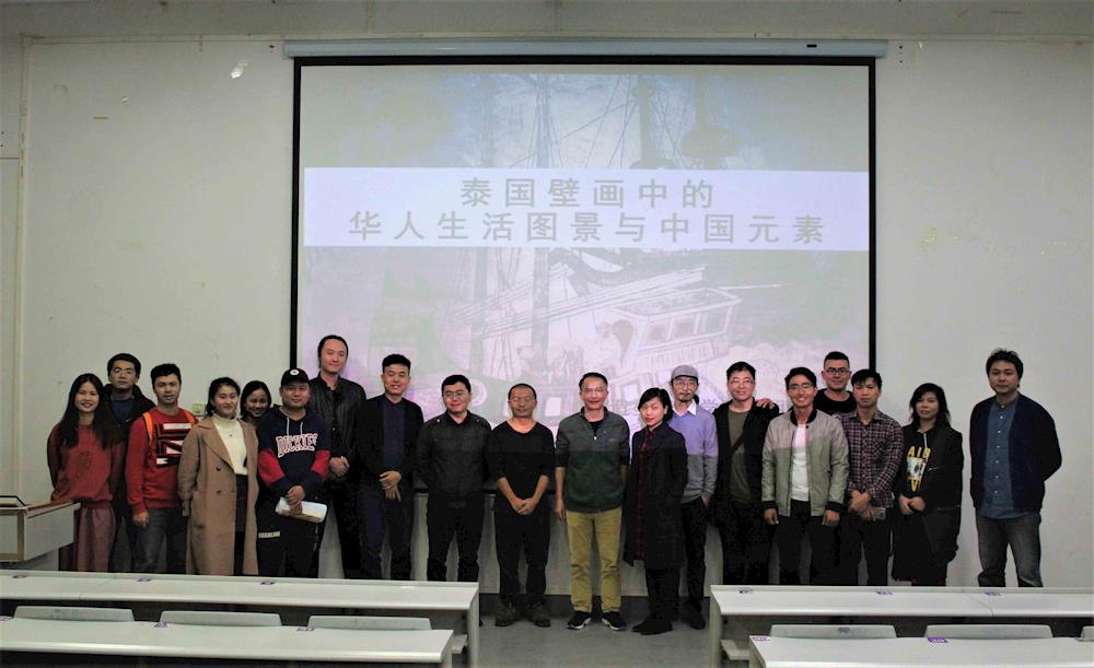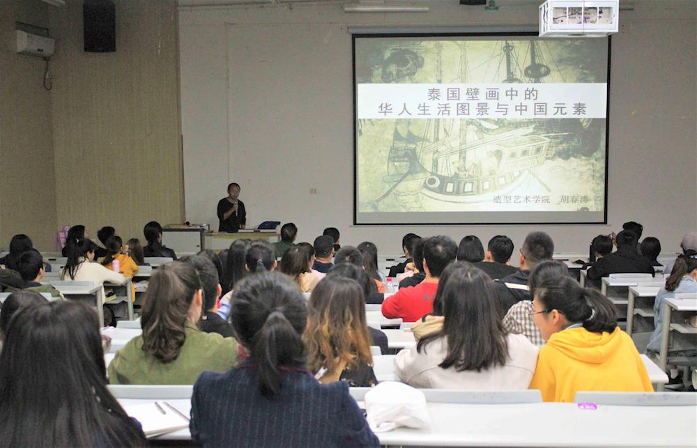 为了更进一步地让师生了解壁画艺术在不同国界中的碰撞,加强师生之间的交流与学习,我院于2018年11月29号晚7点,在相思湖校区设计楼2201教室成功举办了 “泰国壁画中的华人生活图景与中国元素”学术讲座,主讲人为我院博士胡春涛副教授。我院院长师生120余人参加了本次学术讲座。学术讲座由我院院长黄月新教授主持。