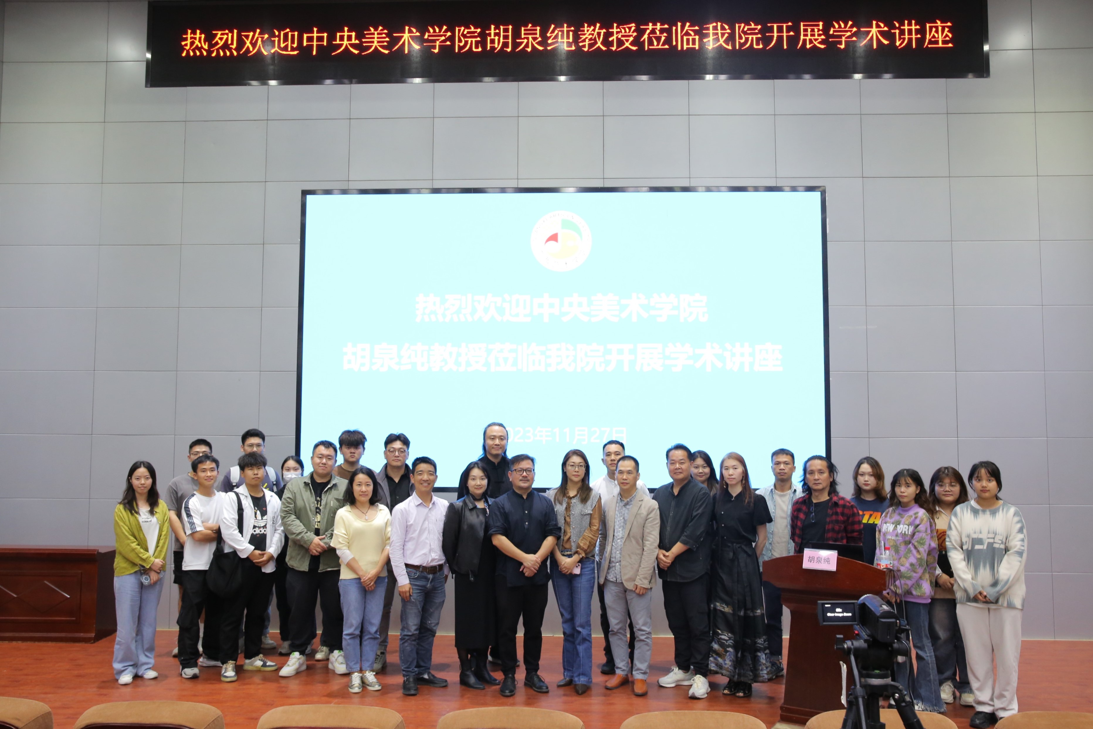 11月27日下午我院在广西艺术学院相思湖校区研究生楼4101学术报告厅成功举办“谈艺术·谈设计”学术沙龙(第四期):中央美术学院胡泉纯教授主讲《乡村公共艺术实践》。bw必威西汉姆联领导、教师以及研究生、本科生等数百名师生参与了活动。本次活动由bw必威西汉姆联雕塑系副主任周祥主持。